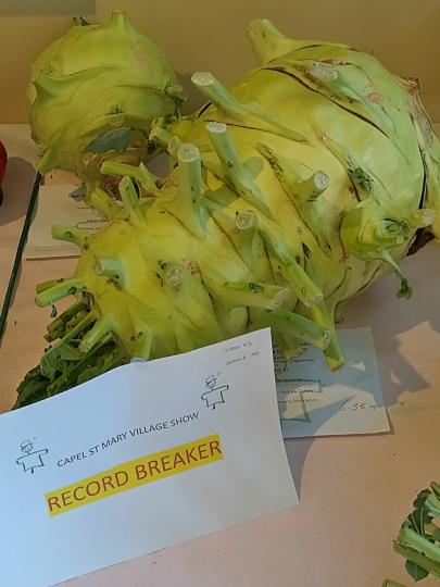 We did break 2 records in the Mammoth classes of the Pumpkin from Rob Birnie weighing in at 118kg and the Kohl Rabi from Andrew Tokely weighing in at 6.35kg. This is always an exiting achievement. Most of us can only marvel at how these records are achieved.